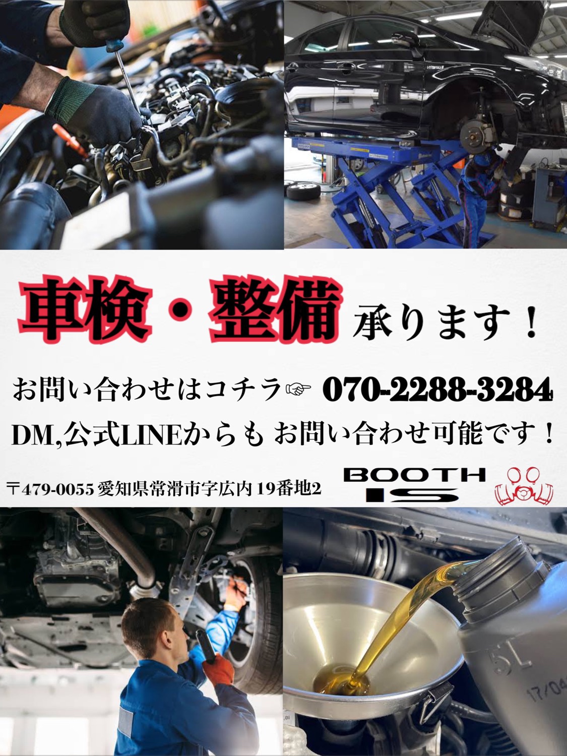 買取強化中 2024/07/01 お久しぶりの更新失礼します...💦いつもご愛用いただき、ありがとうございます✨トヨタ クラウンアスリート買取させていただきました!ありがとうございます😊買取強化中です!まずは査定からでも...🙆🏻♀️お気軽にご連絡ください!熱中症には気をつけてお過ごし下さい🌞 車検承ります! 2024/02/14 お久しぶりの更新になってしまいました💦いつもご愛用ありがとうございます!皆様、車検の時期は大丈夫ですか?車検時期を過ぎてしまって思わぬ出費が発生してしまわないよう、要チェックです✊🏻この機会に、ぜひチェックしていただき、お問い合わせください😊 2024年始動! 2024/01/06 新年、明けましておめでとう御座います🐉🎍2023年はたくさんのご利用誠にありがとうございました😊2024年もBOOTH ISをよろしくお願い致します🙇🏻♀️長期休業明け、本日より稼働しています✊🏻車のことなら何でもご相談ください! PREV 3 4 5 PREV